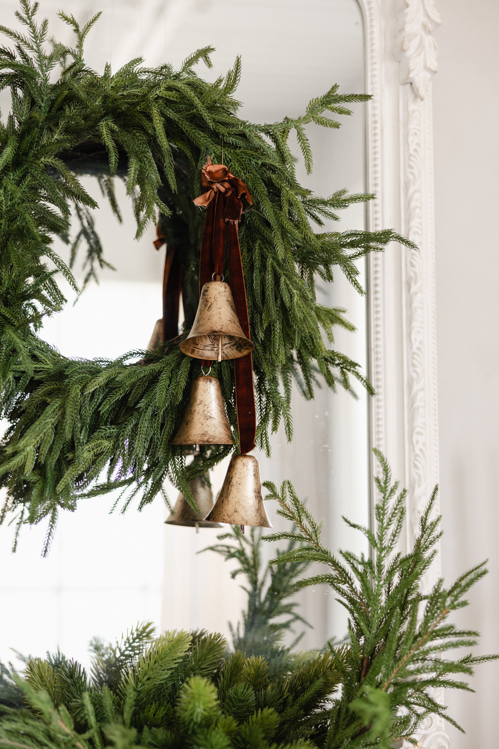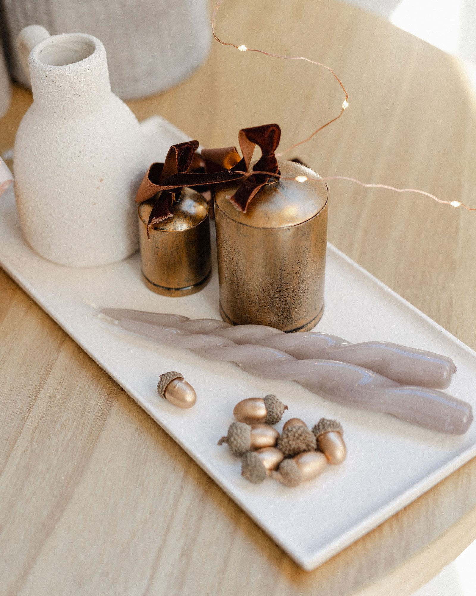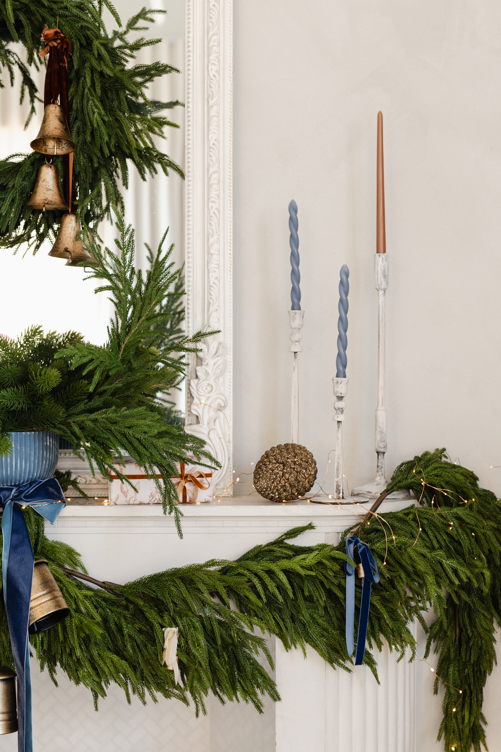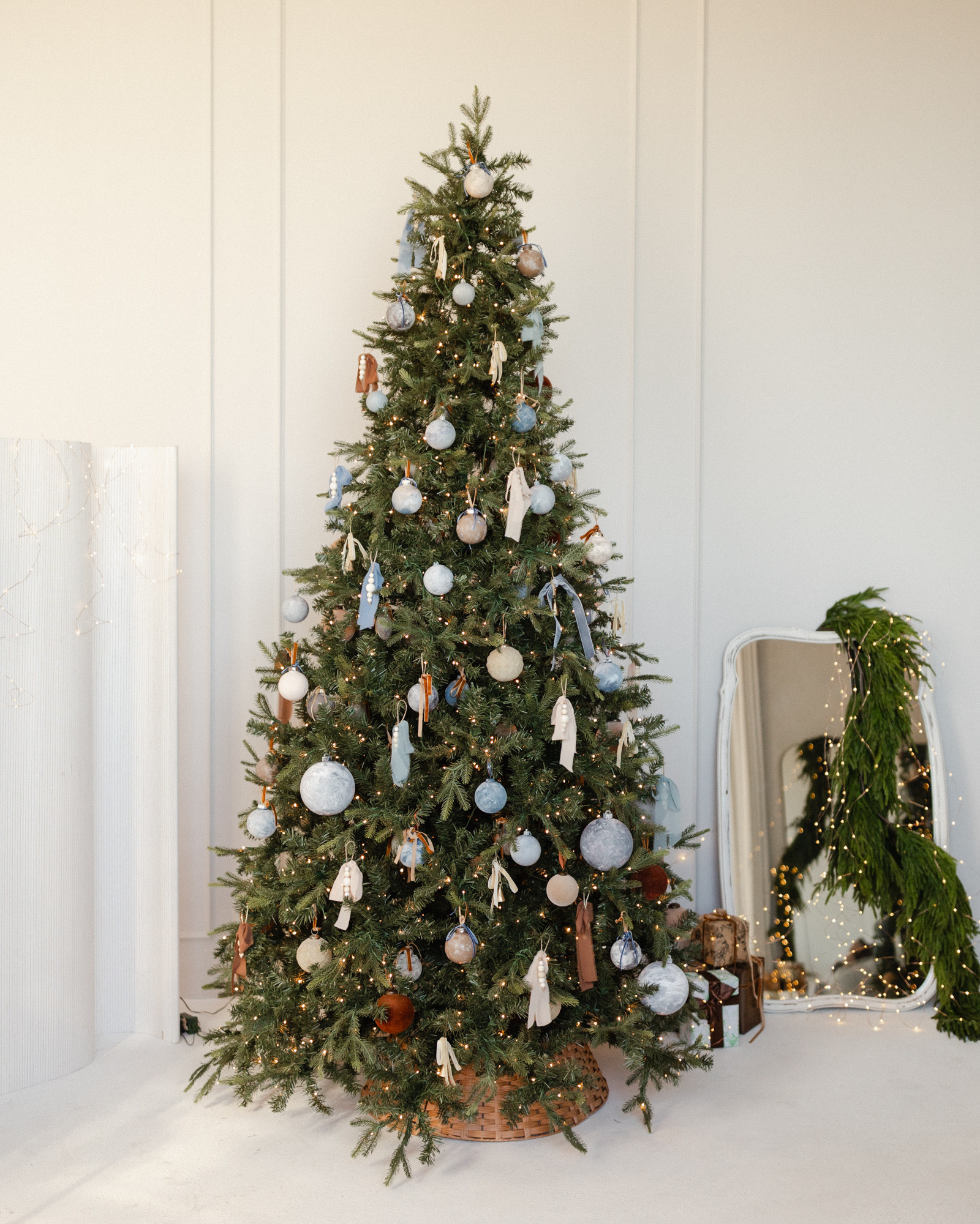 A quiet ode to warmth and refinement, this setup invites you into our Salon Studio with sculptural bells, stormy blues, velvet ribbons, and linen-wrapped gifts. A space where modern lines meet vintage textures, where beauty lingers in the details.