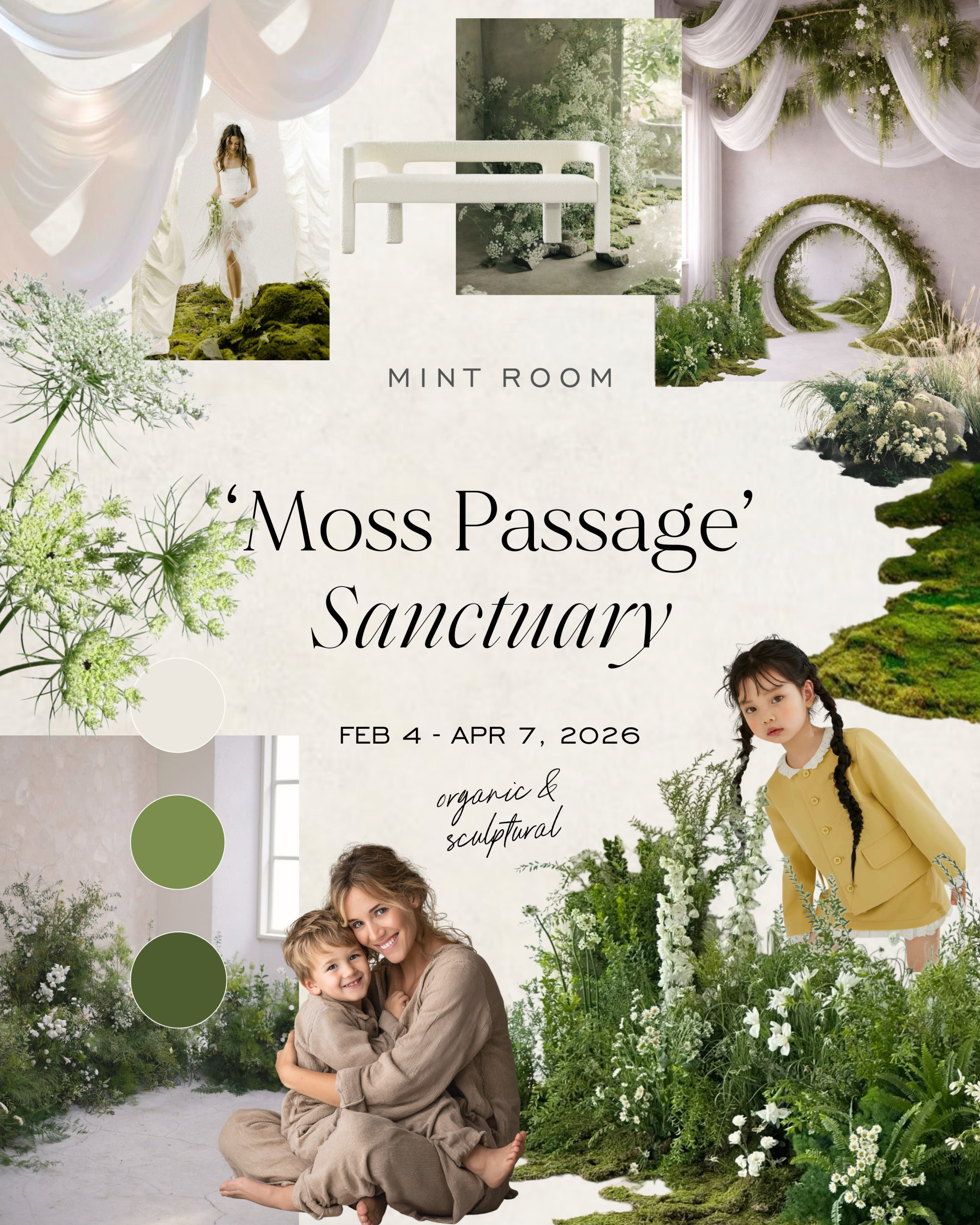 This installation invites visitors into a softened, natural world — one that feels overgrown, untouched, and quietly immersive. At its center stands a round arch, gently reclaimed by moss, its form blurred by organic growth rather than defined by structure. Around it, moss-covered islands emerge across the floor, scattered with delicate white wildflowers, creating a landscape that feels discovered rather than designed.